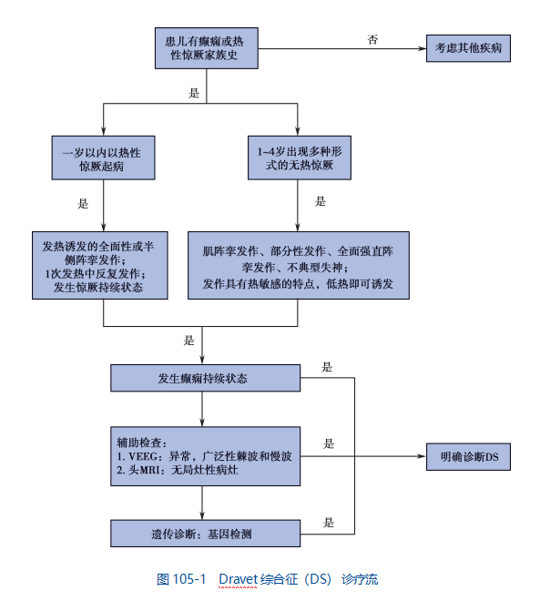 DS 患儿出生时多正常,在 1 岁以内起病,平均发病年龄为 5.6 个月。首次发作常为热性惊厥,可为一侧性或全面性阵挛或强直阵挛发作,热性惊厥具有发作持续时间长和反复发作特点,可出现持续状态。28% ~35%患儿可能以无热惊厥起病,但在以后病程中常有热敏感特点。各种原因引起的体温升高,包括运动、发热、疫苗接种、洗热水澡和环境温度高等,均容易诱发或使发作加重,并易发生癫痫持续状态。有些 DS 患儿会出现以癫痫持续状态之后深昏迷为特征的急性脑病。