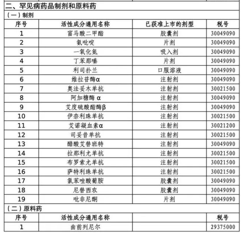 第三批适用增值税政策的抗癌药品和罕见病药品清单发布