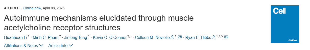关键词:乙酰胆碱受体;自身抗体;自身免疫疾病;冷冻电镜;电生理学;离子通道;肌无力;重症肌无力;结构生物学