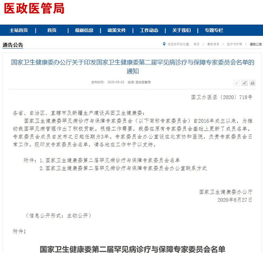 四、国家卫生健康委公布第二届罕见病诊疗与保障专家委员会名单